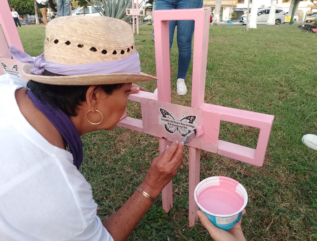 Asimismo, realizaron una serie de actividades artísticas y culturales, además de dar un nuevo toque de pintura a las cruces color rosa colocadas en el lugar.