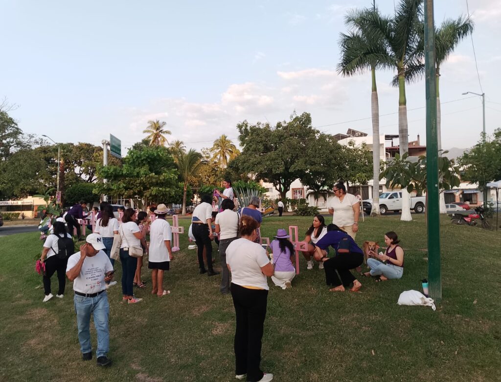 Igualmente, las y los asistentes reiteraron el mensaje de denuncia ante las autoridades al colocar listones en la cruz monumental del Parque de las Mujeres en Puerto Vallarta.