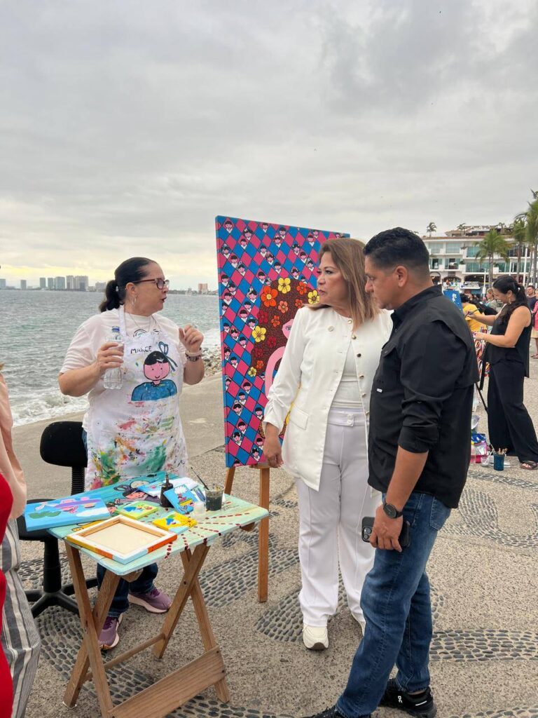 La iniciativa de la artista plástica Caty Huet e impulsada por la regidora Laurel Carrillo, que preside la Comisión Edilicia de Cultura, ha resultado todo un éxito al reunir a talentosas artistas que pintan en vivo mientras interactúan con el público, compartiendo historias, técnicas e inspiración con quienes pasean por el malecón.
