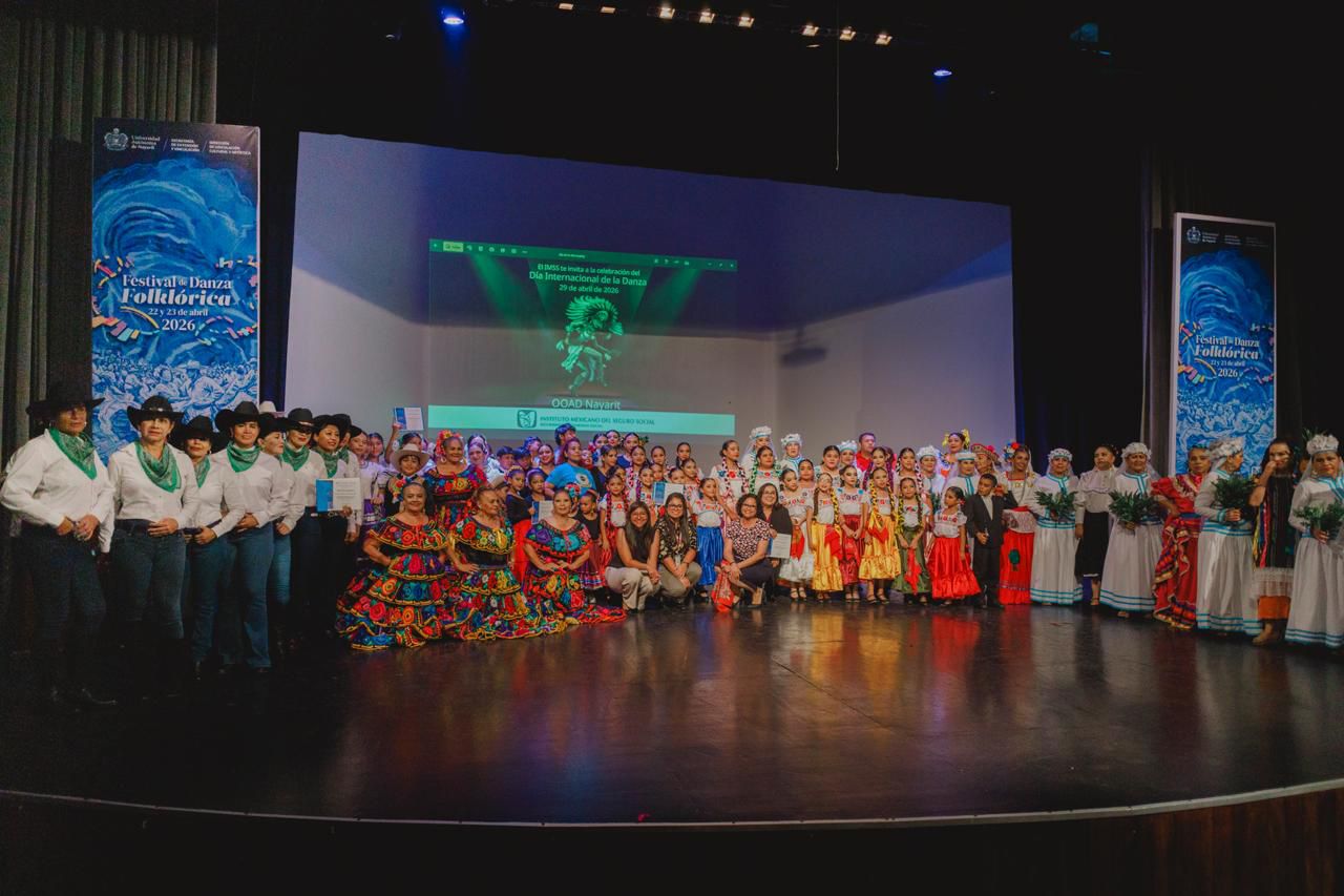 Con el objetivo de crear espacios de encuentros artísticos para celebrar la fuerza expresiva del cuerpo, memoria cultural de los pueblos y riquezas de las tradiciones que a través de la danza continúan vivas en las comunidades, se llevó a cabo la inauguración del Festival de Danza Folklórica 2026, en el marco del Día Internacional de la Danza, organizado por la Universidad Autónoma de Nayarit (UAN), en colaboración con el Centro de Seguridad Social del Instituto Mexicano del Seguro Social (IMSS).